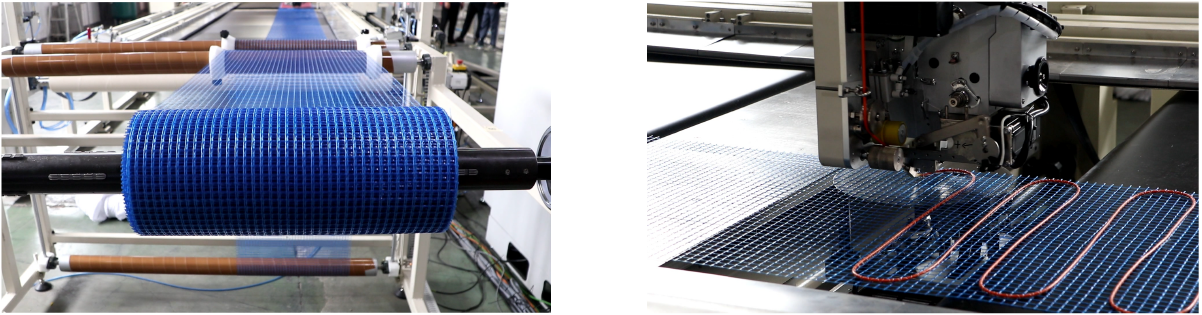 采用锁式针迹,加热线Z字线迹固定。