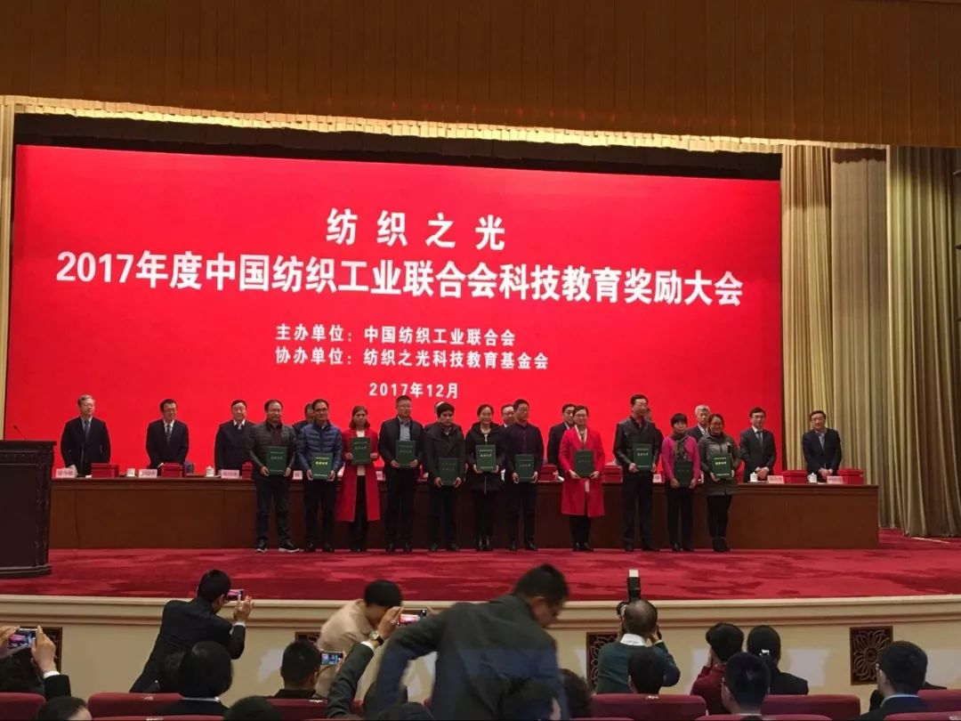 2017年12月18日,由中国纺织工业联合会主办,纺织之光科技教育基金会协办的“纺织之光”2017年度中国纺织工业联合会科技教育奖励大会在北京人民大会堂隆重召开。
