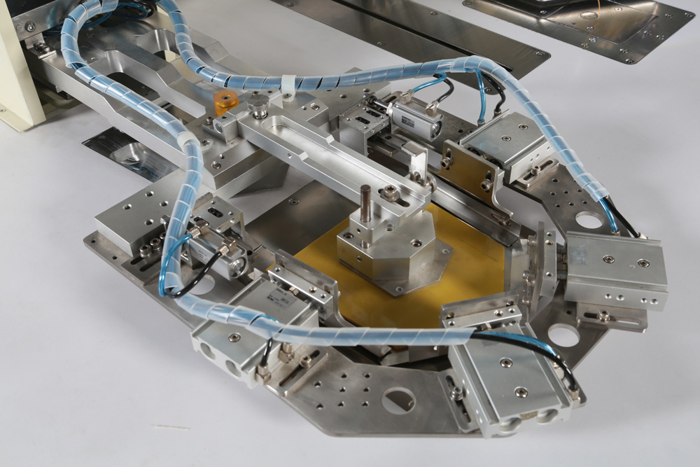 到达折边工装位置,压住布料,折边工装收回,执行此动作不影响折边效果。替代原有的手工操作,效率更高,产品一致性更好。