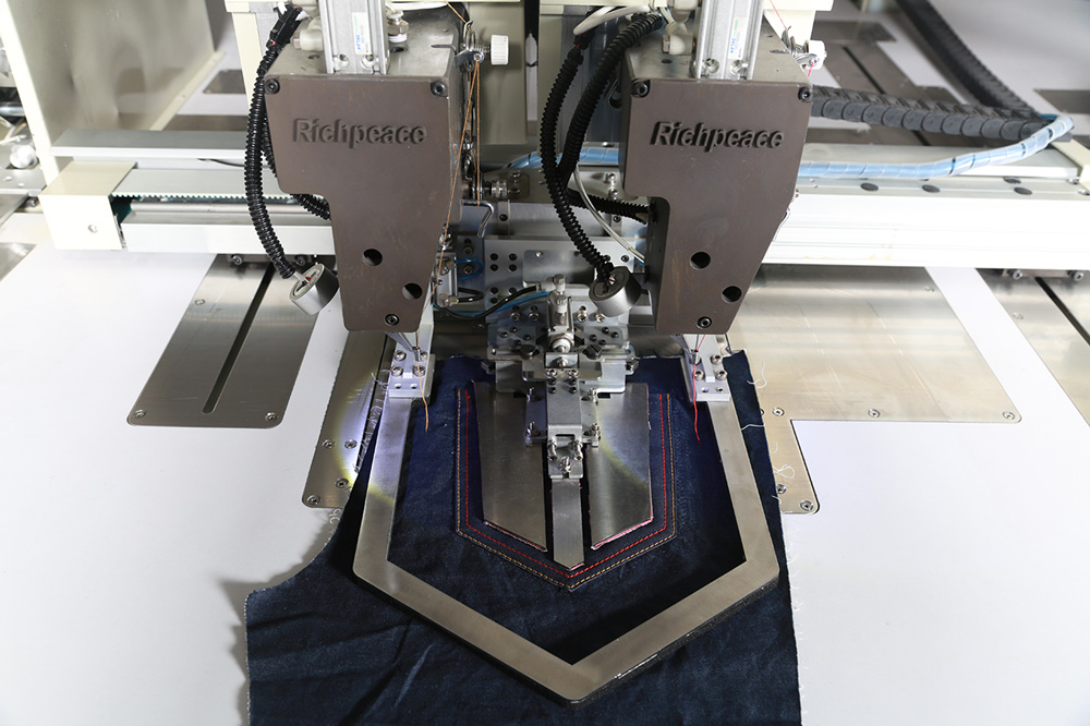双色线迹整齐,两条线迹平行,针步相同;接料工装沿既定轨迹运行,误差可达0.2mm
