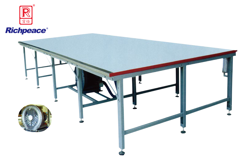 通过吹气装置轻松移动已铺好的面料,配合自动裁床做 到边铺布边裁剪,极大的提高了工作效率。