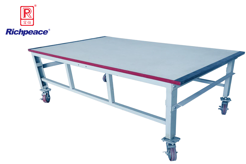 模块式设计,便于拆装的同时,运用重型结构设计,抗 冲击性强,能更好的满足各种型号的铺布机的要求。表 面符合1mm厚高耐磨美耐板,同时满足人工裁剪使用。