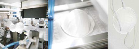 1.一体式设计 , 从原料进入 , 杯体成型,过滤层预成型,罩杯周边焊接,罩杯周边冲切,自动转序,自动移印,自动贴外置鼻夹 ,自动钉头带(可选自动焊接头带), 自动超声波上呼吸阀(选配),机械手抓取,自动传输等工艺自动完成,实现罩杯式口罩的全自动生产。